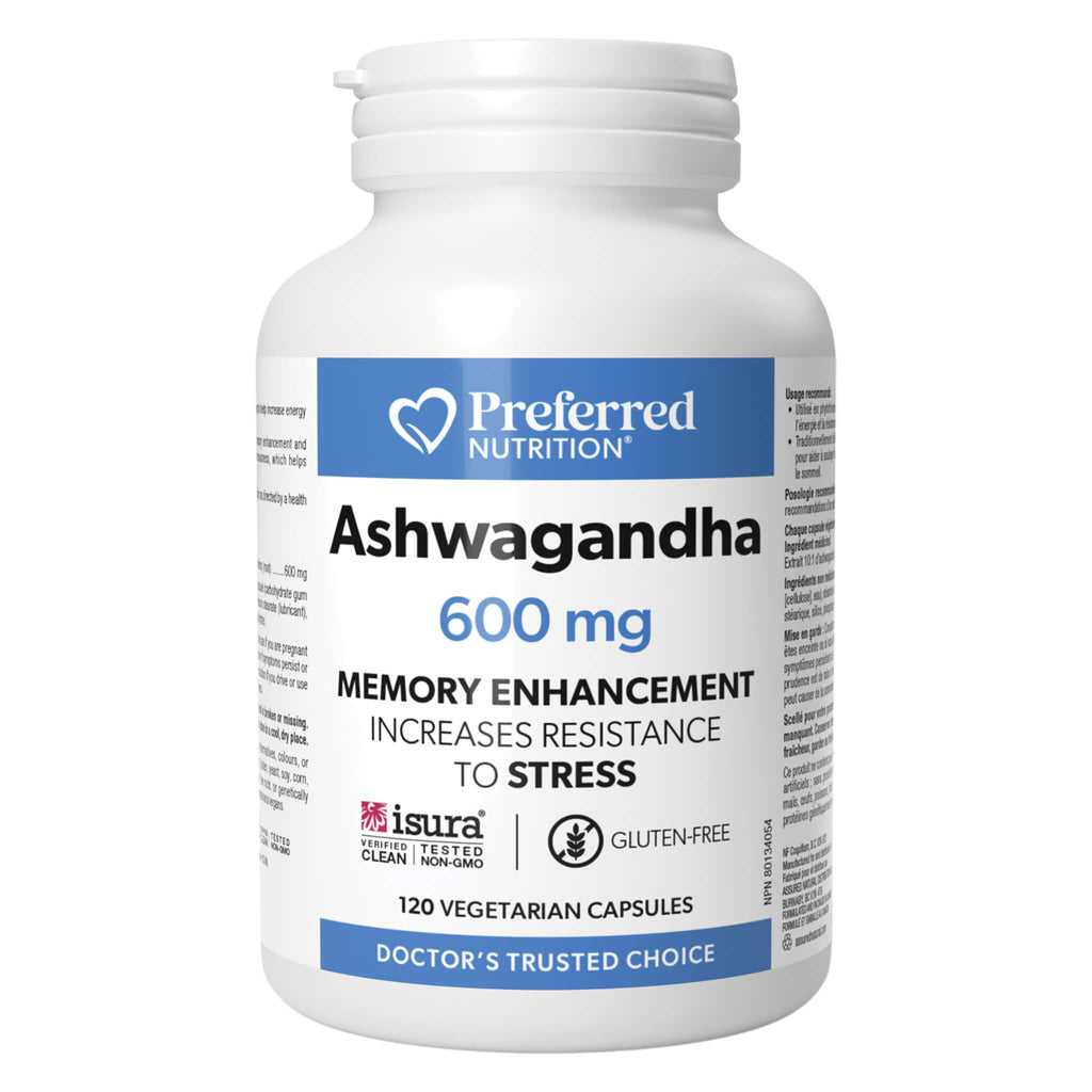 Preferred Nutrition Ashwagandha 600 mg is traditionally used in Ayurveda for memory enhancement and in herbal medicine as an adaptogen to help increase energy and resistance to stress over time. This one-per-day formula contains a 10:1 ashwagandha extract, providing the equivalent of 6000 mg of dry herb per vegetarian capsule.