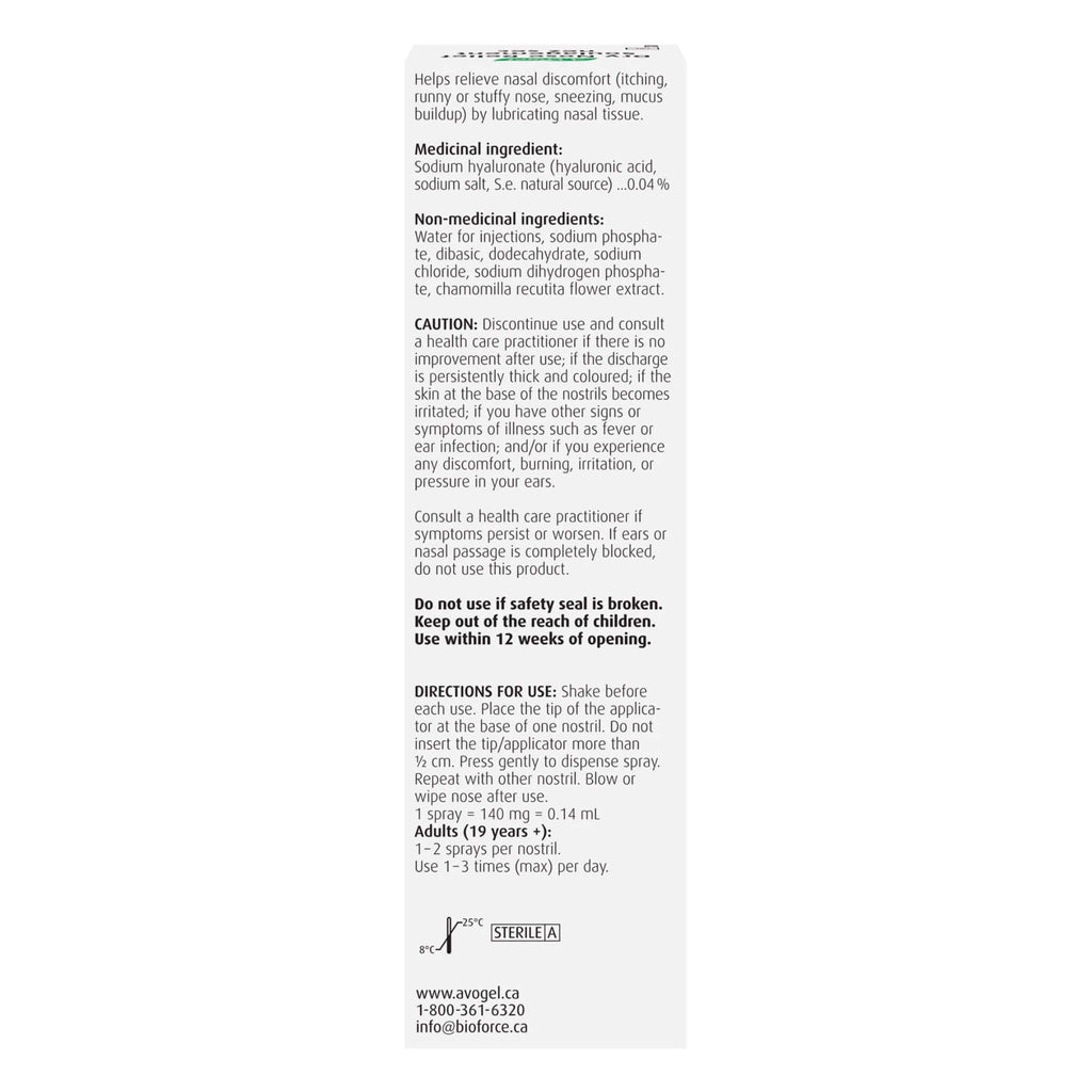 Helps relieve nasal discomfort (itching, runny or stuffy nose, sneezing, mucus buildup) by lubricating nasal tissue.