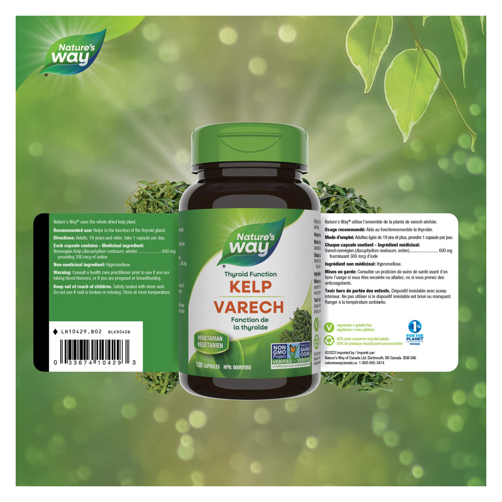 Nature's Way Kelp is a source of iodine and helps in the function of the thyroid gland. Nature's Way Kelp is Vegetarian and Non-GMO Project Verified.