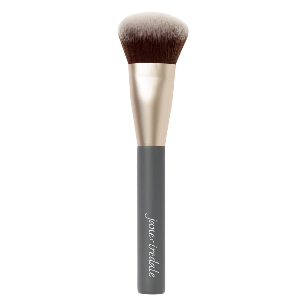 Large, multipurpose brush with gradated bristles designed to seamlessly apply creams, liquids and powders.