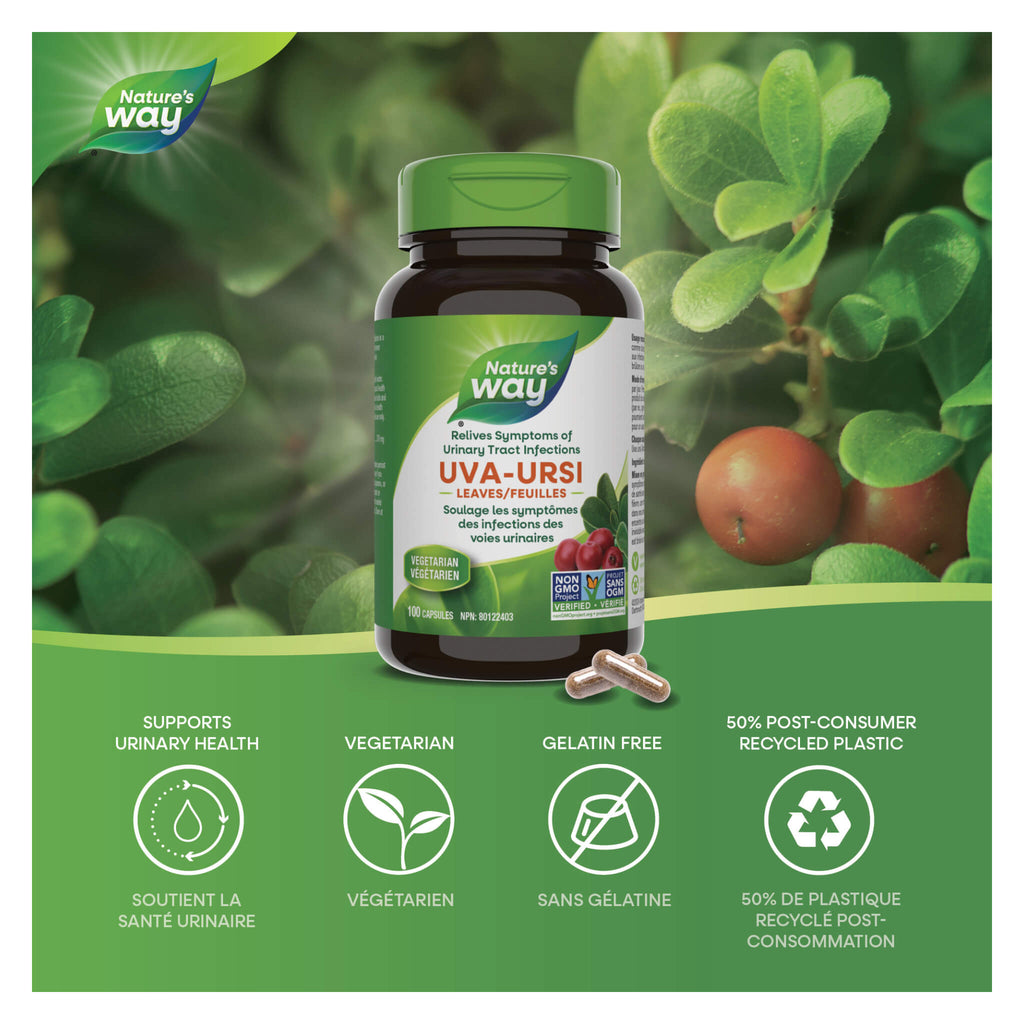 Nature's Way Uva Ursi Leaves is traditionally used in herbal medicine to help relieve symptoms associated with mild urinary tract infections (UTIs). Nature's Way Uva Ursi Leaves is Vegetarian and Non-GMO Project Verified.