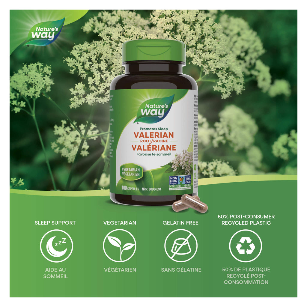 Nature's Way Valerian Root is traditionally used in Herbal Medicine as a sleep aid to help promote sleep and relieve restlessness or nervousness. Nature's Way Valerian Root is Vegetarian and Non-GMO Project Verified.